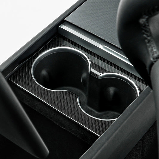 Real Carbon Fiber Cup Holder Frame Cover for Tesla Model 3 2024 Highland