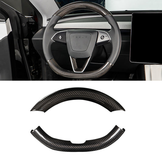 Real Carbon Fiber Steering Wheel Trim For Tesla Model 3 Highland 2024+