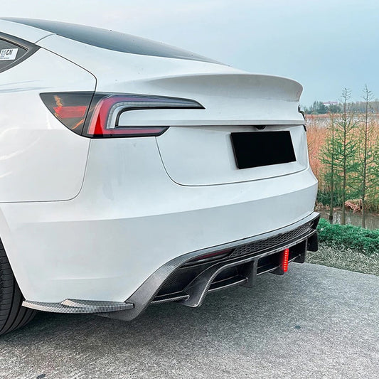 Real Carbon Fiber Rear Diffuser for 2024+ Tesla Model 3 – Performance & Aerodynamic Upgrade